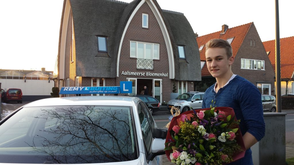 Zo Tom nu mag ook jij bloemen bezorgen voor de Aalsmeerse Bloemenhal! Het is valentijnsdag, jij verdient nu een bloemetje uit eigen zaak. Bedankt voor je gezelligheid tijdens de rijlessen. Dat je maar veel boeketten mag bezorgen.